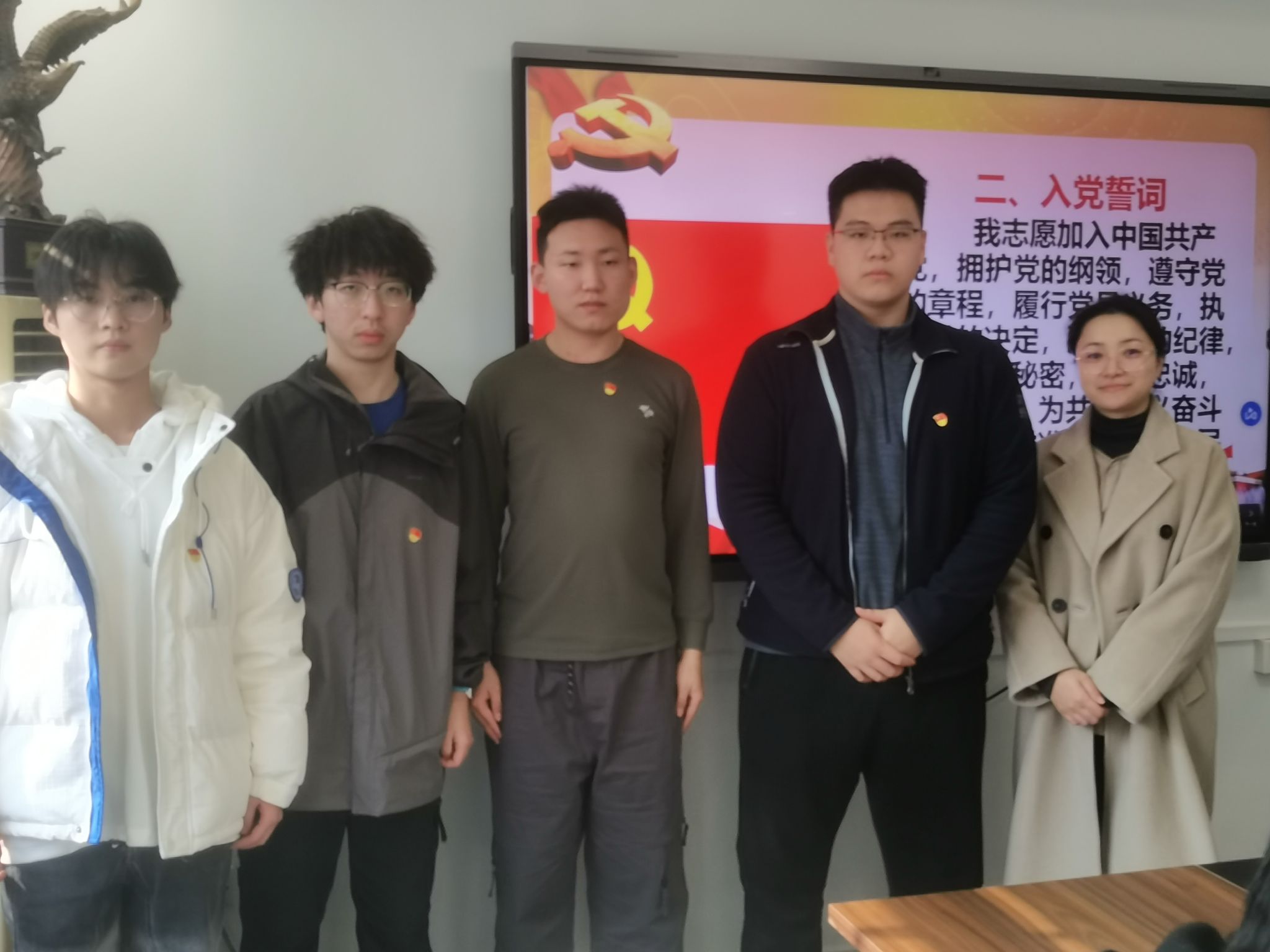 随后,全体同志在屈璐老师的领读下激情满怀地重温了入党誓词。在朗朗的宣誓中,大家仿佛回到了那个革命年代,感受到了先辈们的英勇无畏和坚定信念。入党誓词中充满了对共产主义理想的崇高追求,也提醒着每一位党员要始终坚守初心和使命,始终保持共产党员的先进性和纯洁性。四位同志表示以后将继续坚定理想信念,加强政治理论学习,为实现中华民族伟大复兴的中国梦而努力奋斗。