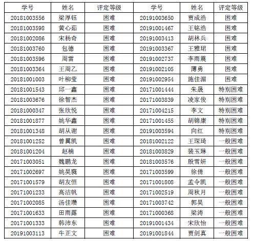 betway西汉姆联官网关于2020-2021学年家庭经济困难学生(老生)认定结果的公示