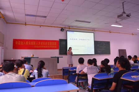 最后,在大学生心理健康教育中心周春燕老师生动有趣的大学生入学教育课堂中,郏守奖等6名新的同学一同随着周老师进行互动,周老师也针对现代大学生在大学生生活中“适应不良”的情况教导了大家一些自助技巧,提出要通过行动改变心态,列出了大学新生需要做好的9点准备。大家在欢声笑语中结束了新生入学教育活动的第一个上午。