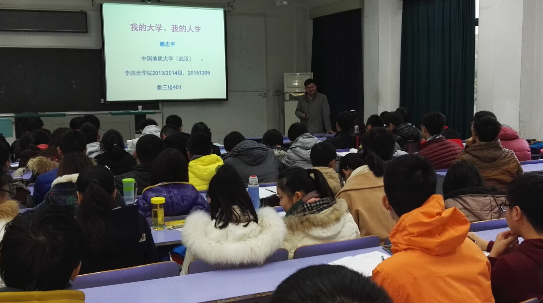 12月9日下午16:00,betway西汉姆联官网2015-2016学年地球科学菁英班“与名师面对面”系列讲座第三讲在教三楼401顺利举行,地球科学学院赖忠平老师为betway官网菁英班学生带来“我的大学,我的人生”的主题讲座,betway官网13、14级全体学生参加。