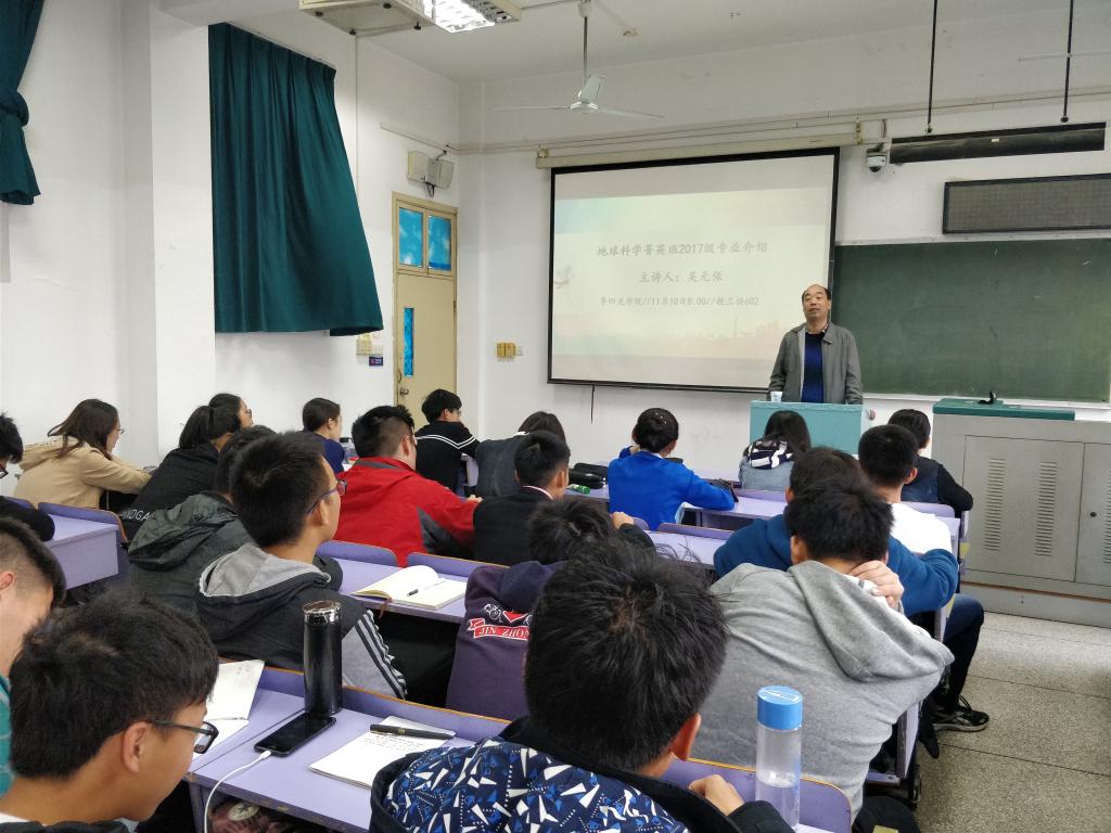 11月10日上午8:00,2017级学生选择专业方向指导交流会第二讲在教三楼602教室召开。为了让betway官网2017级同学对地质学和地球化学专业的基本现状、研究领域等有更深入的认识,科学选择专业方向,学院特别邀请了地球科学学院吴元保老师为同学们做专业介绍。betway西汉姆联官网2017级全体学生到会聆听。