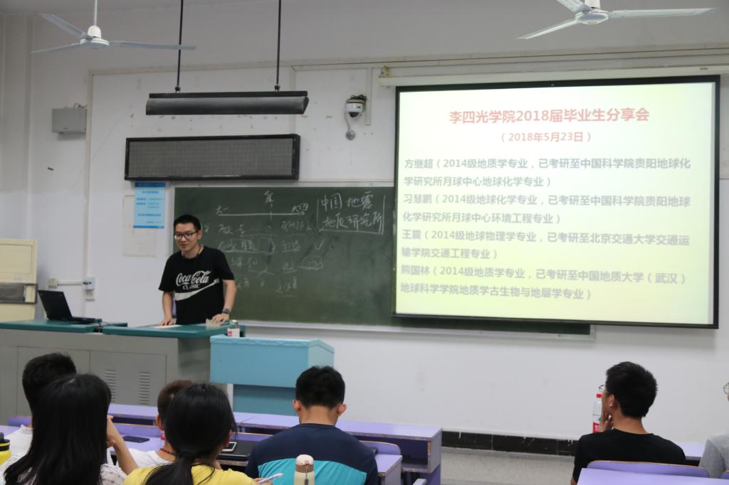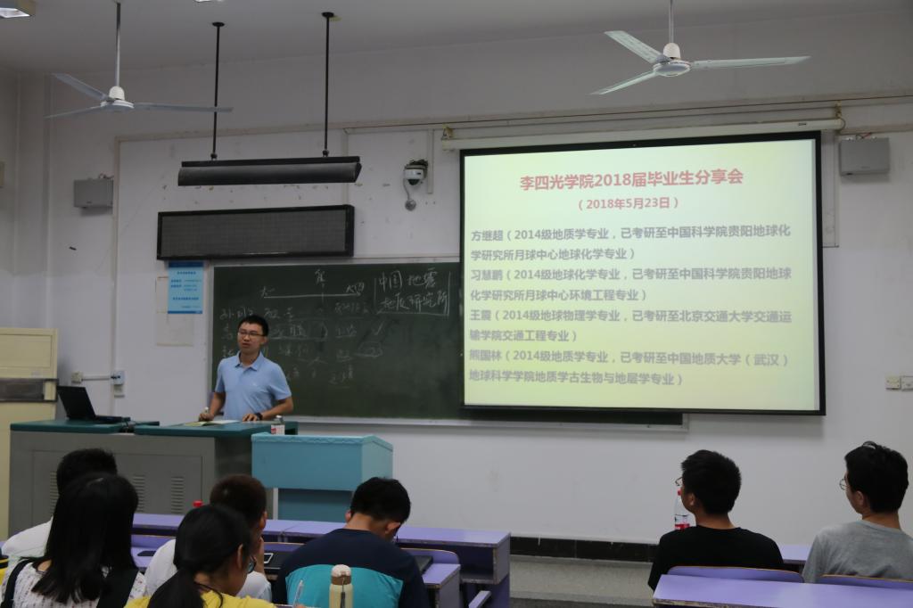 第五个进行分享的是考研至betway西汉姆联官网(武汉)地球科学学院地质学专业的熊国林同学。他回味了自己大学四年的生活,由于大一时有一门挂科导致以后努力提高绩点的经历其实使自己丧失了生活中的一些乐趣。他肯定了英语的重要性,还指出强劲的编程能力会使人成为专业内的领先者。