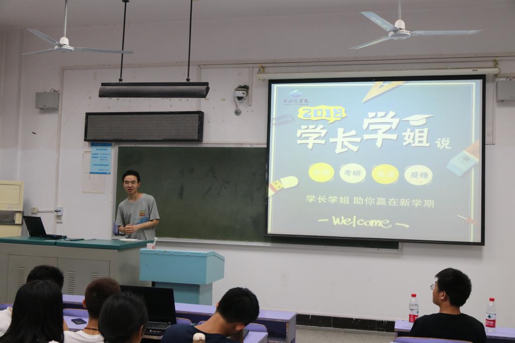 紧接着进行分享的是跨专业考研至北京交通大学交通运输学院交通工程专业的王震同学。他对大一大二的学弟学妹们说,如果不知道今后的方向,就先做好当下的事;对大三的学弟学妹们说,要勇于突破自己的心理舒适区,并结合自己的备考经历给同学们提出了一些建议。