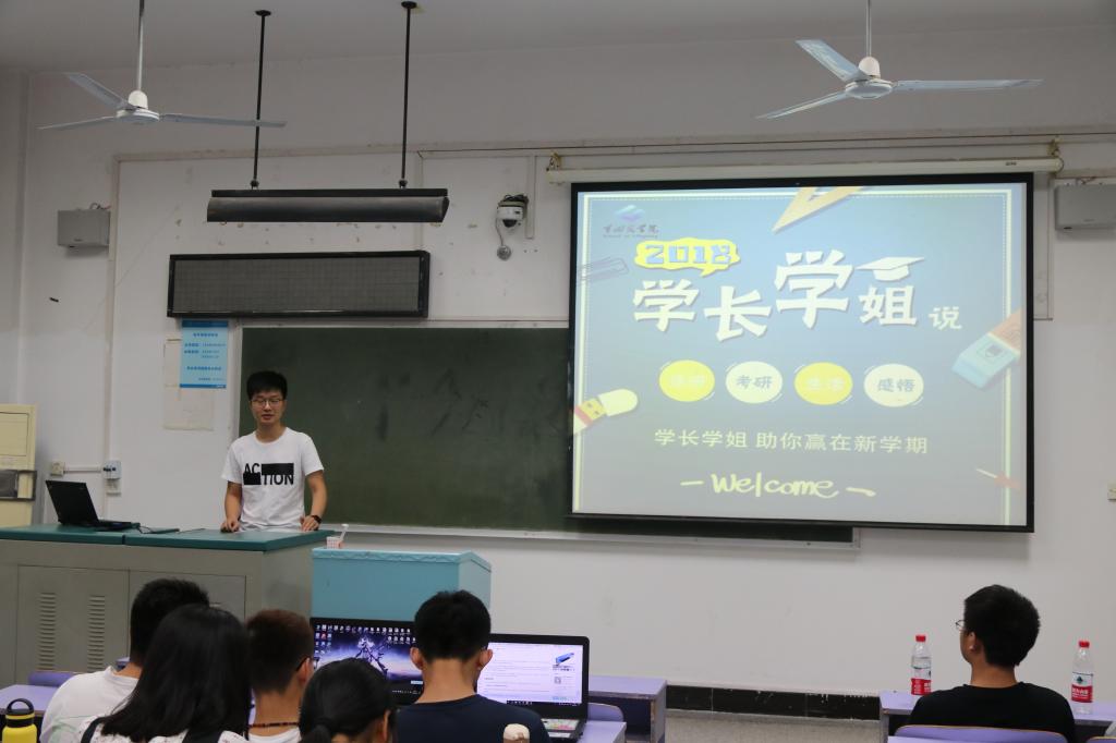 随后进行分享的是已保研至中国科学院遥感与数字地球研究所地图学与地理信息系统专业的王金晓同学。他主要结合自己的经历对学弟学妹提出一些告诫,大一大二时要早做规划,促使自己一直向着目标前进,不会因迷茫前路而庸碌当前。