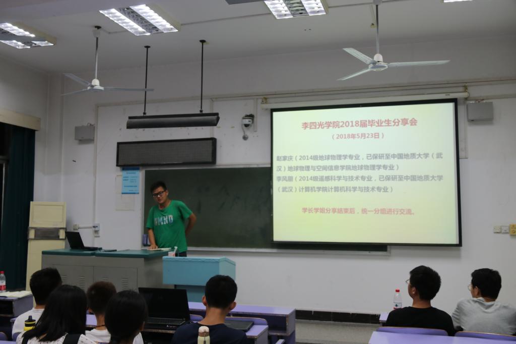 分享会正式开始,首先进行分享的是已保研至betway西汉姆联官网(武汉)地球物理与空间信息学院地球物理专业的赵家庆同学。他提出同学们应该利用好空闲时间多充实自己;大二、大三的同学可以着手准备数学建模大赛或进一步参与美赛MCM、ACM,这些经历在准备考研时可以为自己增添亮点。最后他也感叹了光阴如梭,大学四年转瞬即逝,我们应珍惜当下的美好大学时光。