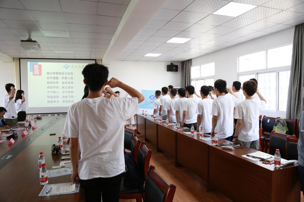 座谈会结束后,赖旭龙、周建伟为毕业生颁发了地球科学菁英班荣誉证书并合影留念。毕业生们再次面向蓝色院旗,宣读了“忠于祖国,热爱人民;崇尚科学,追求真理;诚实守信,自立自强;大气做人,灵气做事;和谐互助,自由飞翔;勤奋学习,誓做栋梁”的青春誓言。