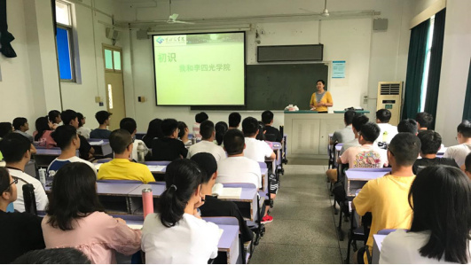 9月4日上午8:30,在教三302,学院教务秘书刘星彦老师及辅导员李若萌老师结合学校和学院实际情况,分别就2019级新生教学培养方案、奖励资助、国际化项目、学生手册这三个方面与同学们进行介绍。