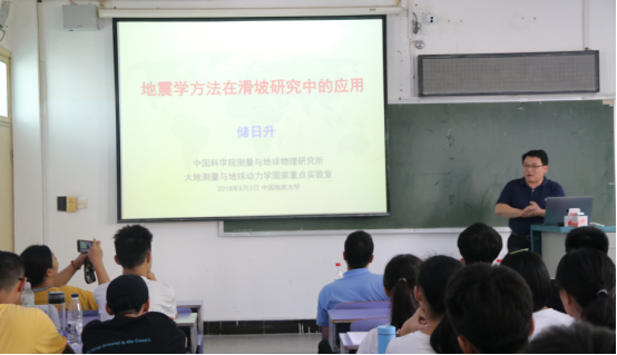 9月3日下午,中国科学院测量与地球物理研究所研究员储日升老师出席betway官网2019级新生开学典礼,并与betway官网新生进行了交流。储老师以“地震学方法在滑坡研究中的应用”为主题为19级带来了大学的第一场专业讲座。储老师以深入浅出的语言,结合生动形象的图片、视频以及PPT特效,向大家阐述了滑坡的类型、地震等级的测量以及地震学方法在滑坡研究以及预防滑坡灾害之中的应用,为同学们了解地质知识、增强专业认同打开了一扇窗,让同学们受益匪浅。