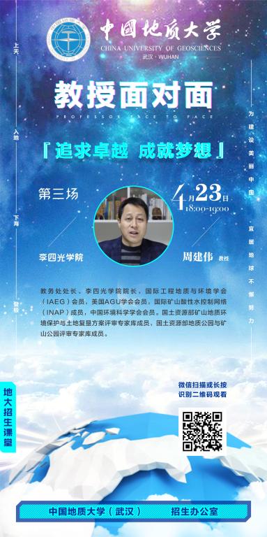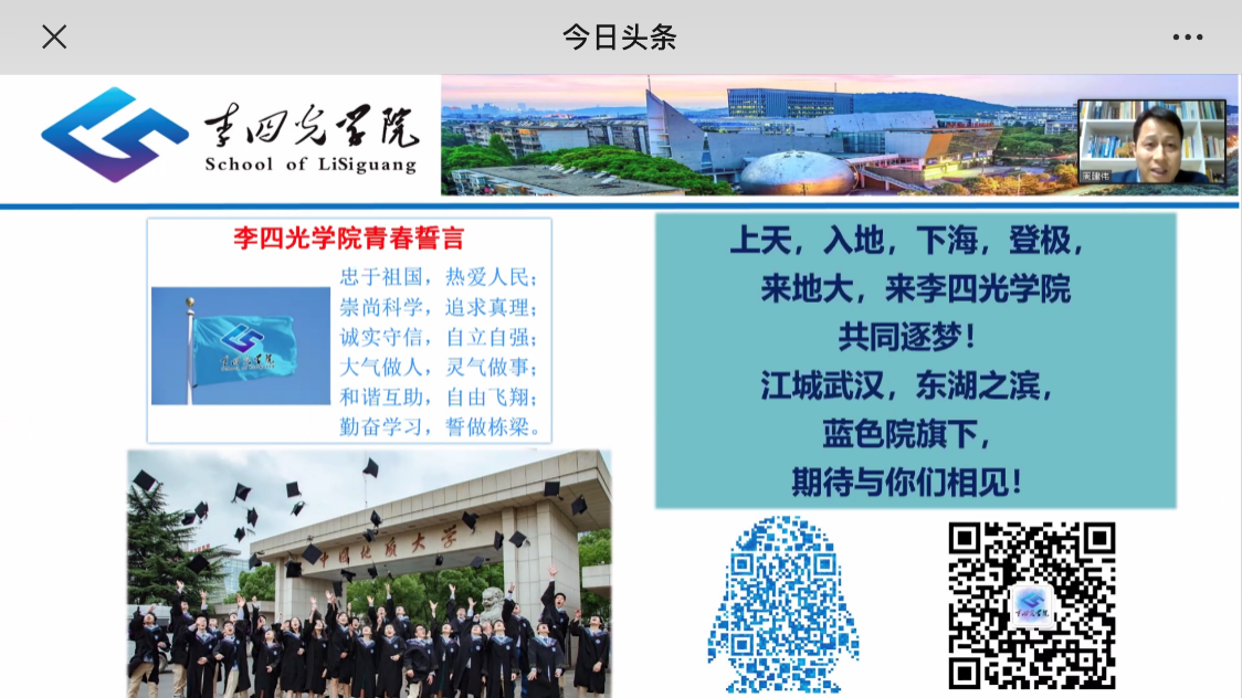2020年4月23日晚18:00,betway西汉姆联官网院长周建伟教授连线今日头条直播间,以“追求卓越 成就梦想”为题,带领广大考生和家长共同走进这所以著名地质学家李四光先生命名的荣誉学院。