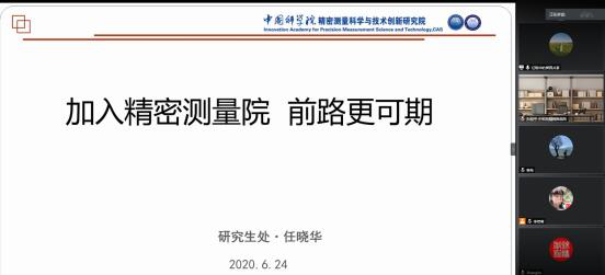 最后,中科院精密测量科学与技术创新研究院研究生处处长任晓华老师结合近年研究生招生数据以及今年的招生政策,通过在线方式与大家进行了交流分享。