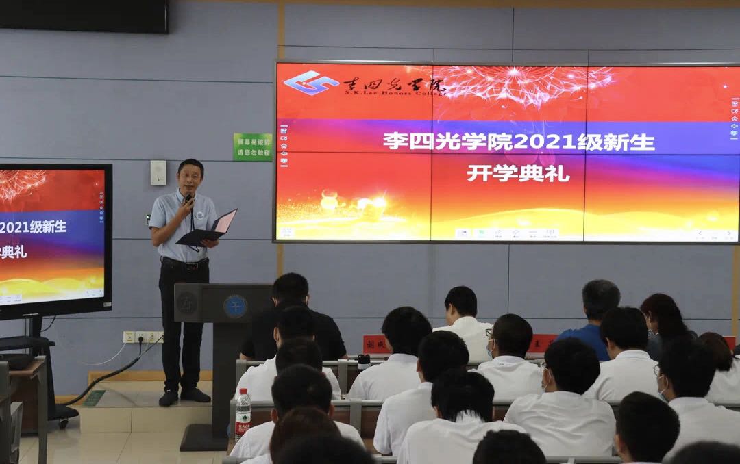 王华致辞,他对2021级新同学表示欢迎,勉励大家在国家发展进入新征程的关键时期,要明确自身所处的时代方位和肩负的历史责任,树立为建设创新型国家而共同努力,实现民族振兴远大目标。他对betway西汉姆联官网在“科教结合、协同育人”办学模式上的探索给予了充分肯定,希望同学们朝着更高、更远、更强的方向努力,把新方法、新技术、新手段与专业学习相结合,为国家在科技领域从跟跑到并跑、领跑持续奋斗。