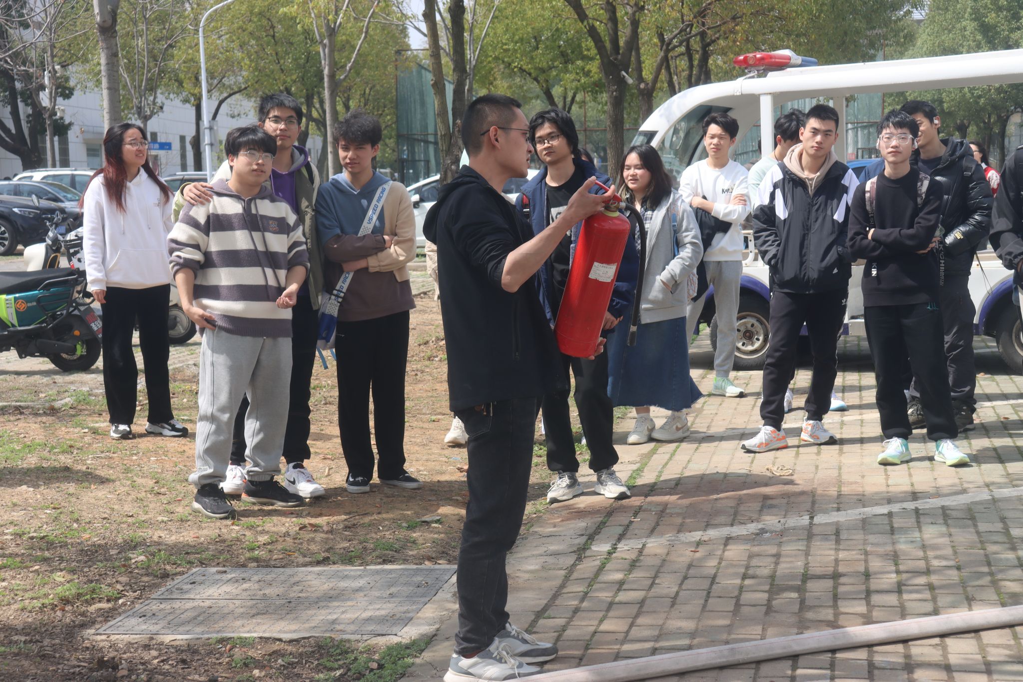 纸上得来终觉浅,绝知此事要躬行。检验理论学习成效的最好方式是付诸行动于实践,为了能在实战中锻炼了同学们面对火灾的紧急逃生和自救能力,2023年3月21日上午11:50,betway西汉姆联官网于北区艺媒大楼门口进行消防演练。同学们在保卫处的带领下进行了实地疏散逃生和灭火演练,并通过保卫处老师的讲解中进一步掌握了灭火器的使用方法和火灾应急处置办法,提升了突发事件应急逃生、自救自护的能力,以“亲身实战”的方式增强了消防安全意识和应对突发事件的能力。