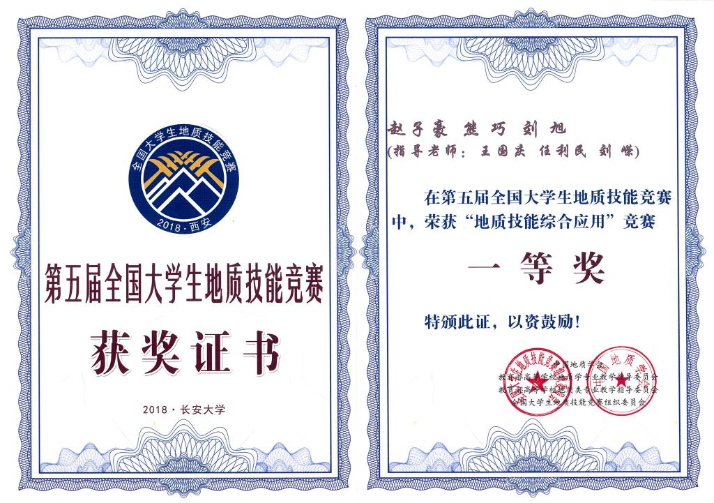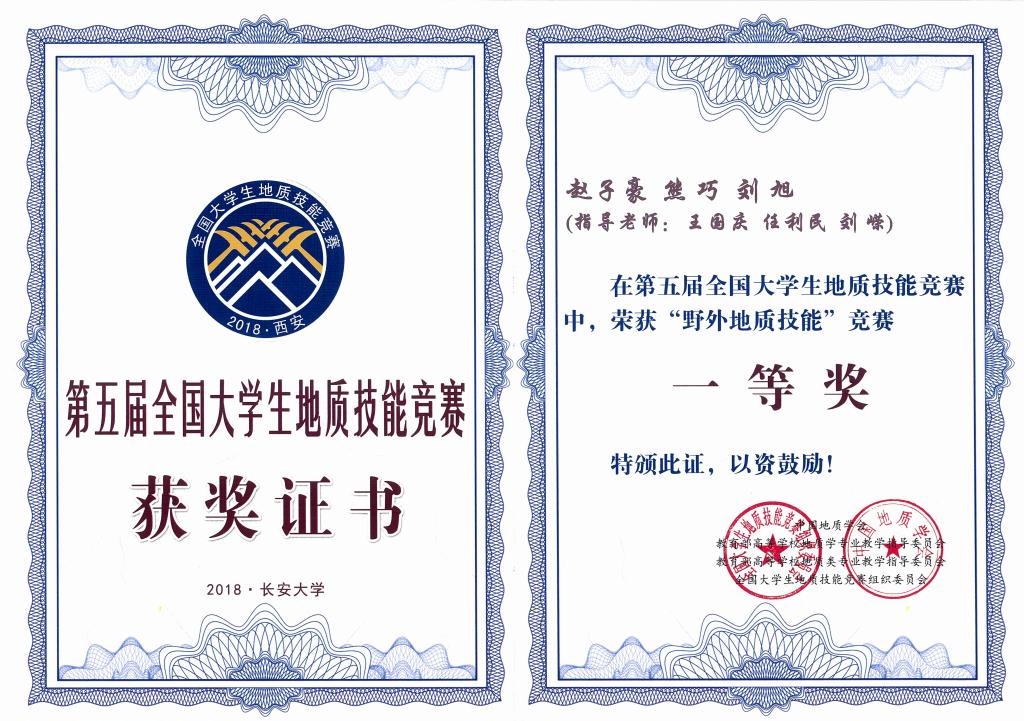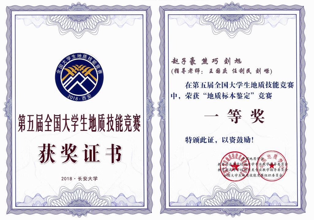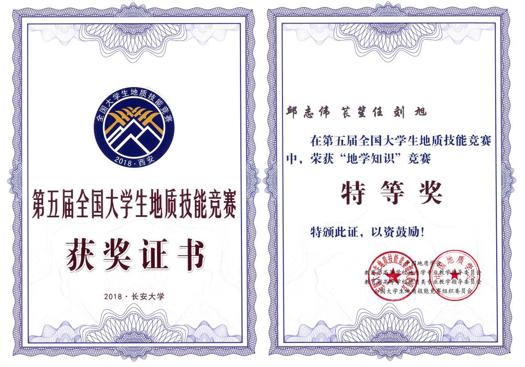 恭喜betway官网2015级刘旭和熊巧同学在全国本科地质技能大赛中取得1项特等奖、3项一等奖和团队特等奖的好成绩!