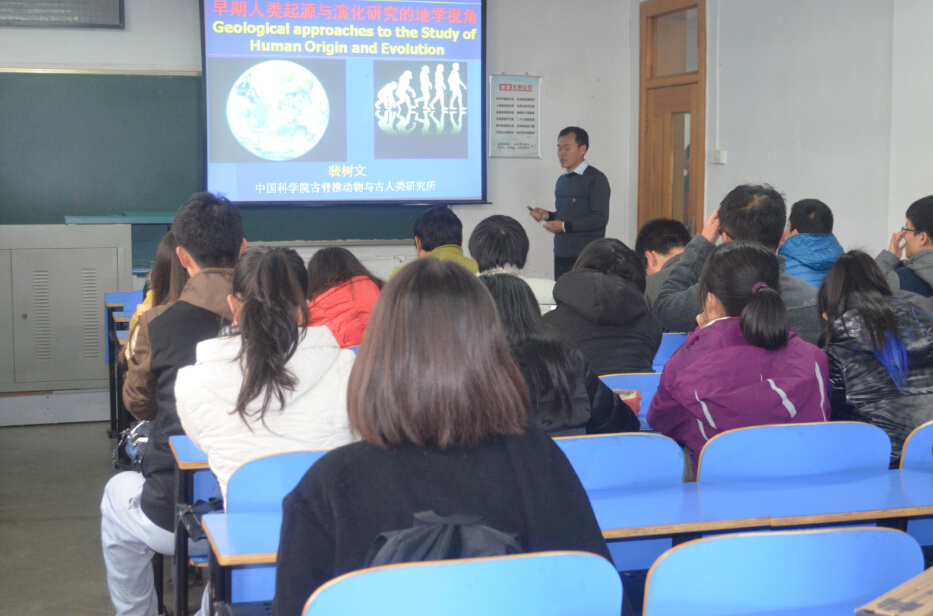 11月27日下午14:00,betway西汉姆联官网2015-2016学年地球科学菁英班“与中科院名师面对面”系列讲座第二讲在教一206顺利举行,中国科学院古脊椎与古人类研究所裴树文老师为betway官网菁英班学生带来“早期人类起源与演化研究的地学视角”的专题讲座。