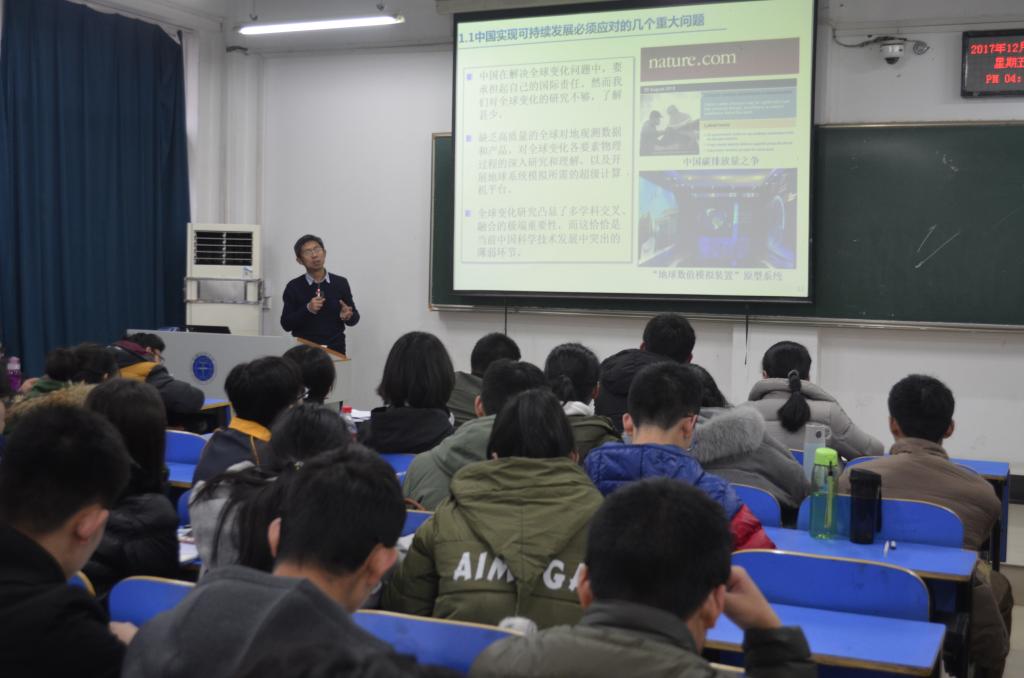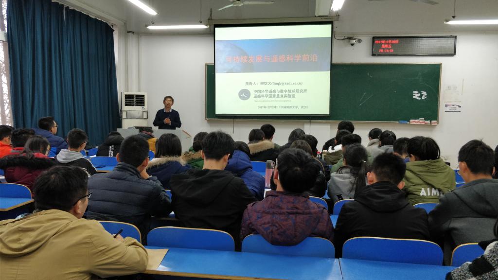 12月29日下午16:00,betway西汉姆联官网2017年地球科学导论课第七讲在北区综合楼210教室顺利开课,中科院遥感与数字地球研究所柳钦火老师为betway官网17级学生带来“可持续发展与遥感科学前沿”主题讲座。