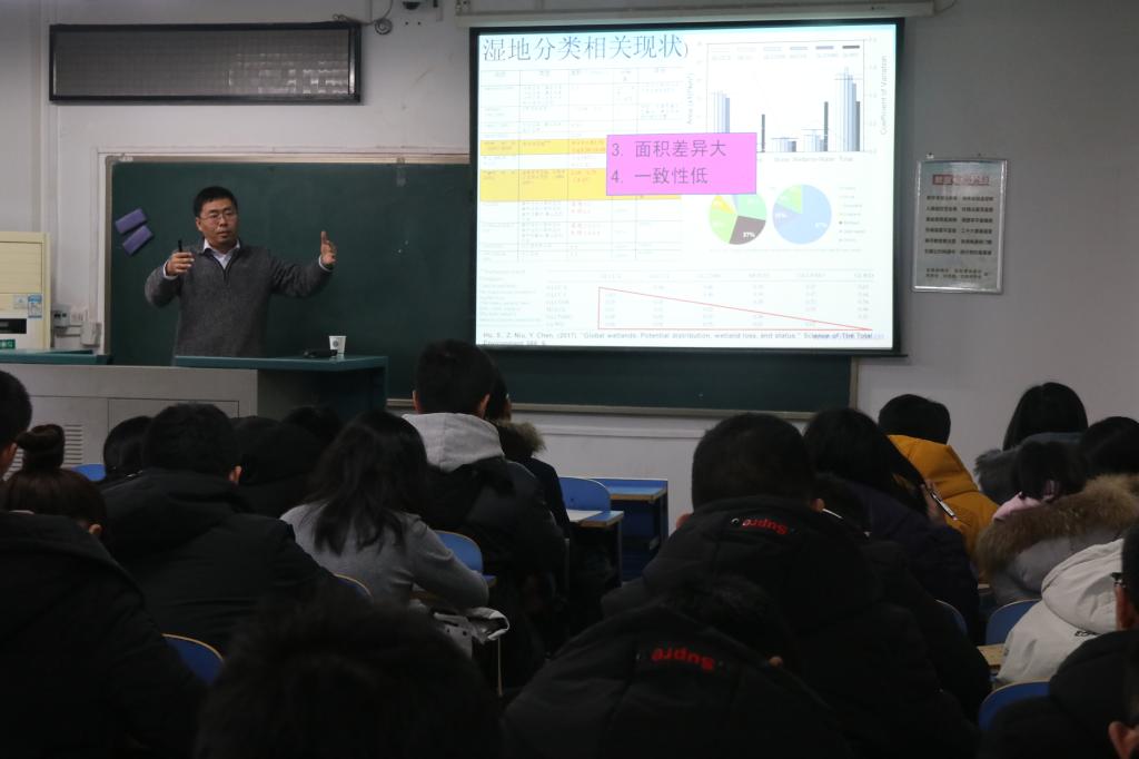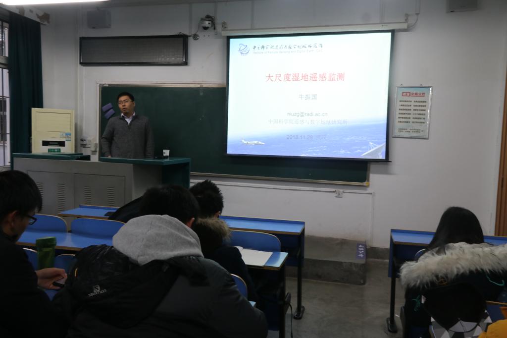 12月28日,betway西汉姆联官网2018年地球科学导论课第八讲在教一楼203教室顺利开课,中科院遥感与数字地球研究所牛振国老师为betway官网18级学生带来“大尺度湿地遥感进展”主题讲座。